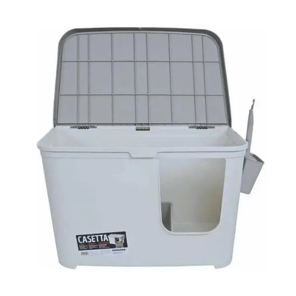 Moderna Casetta Camelia Kapalı Kedi Tuvaleti, çizilmeye ve UV ışınlarına karşı dayanıklı malzemeden üretilmiştir. İçerisinde kedi kumu ile doldurulabilen ekstra bir tepsi bulunur ve kumu değiştirirken sadece tavanı açarak tuvalet kabını çıkarıp kolayca temizleyebilirsiniz. Yüksek kenar yapısı sayesinde kumlar saçılmaz.