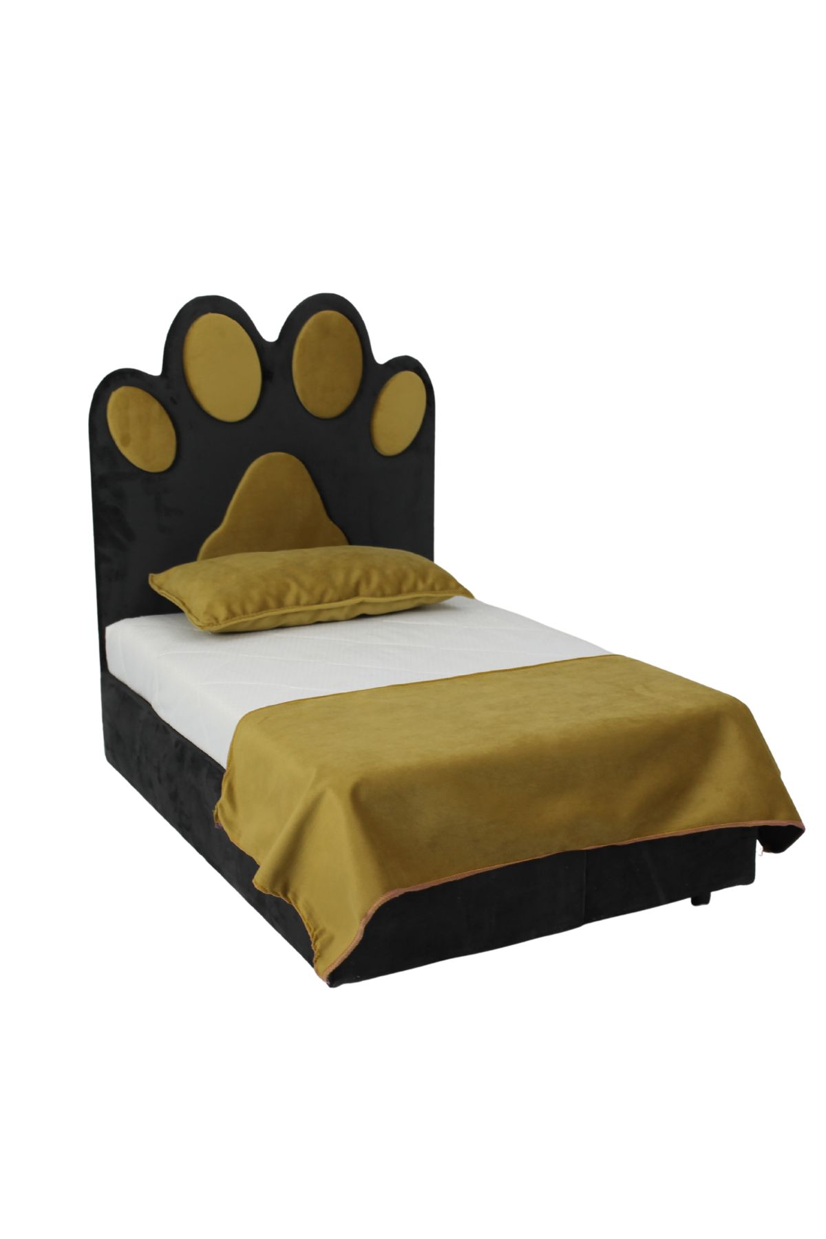 Kedi ve Köpek Pati Desenli Bazalı Yatak Antrasit / Hardal M Boy 50*70